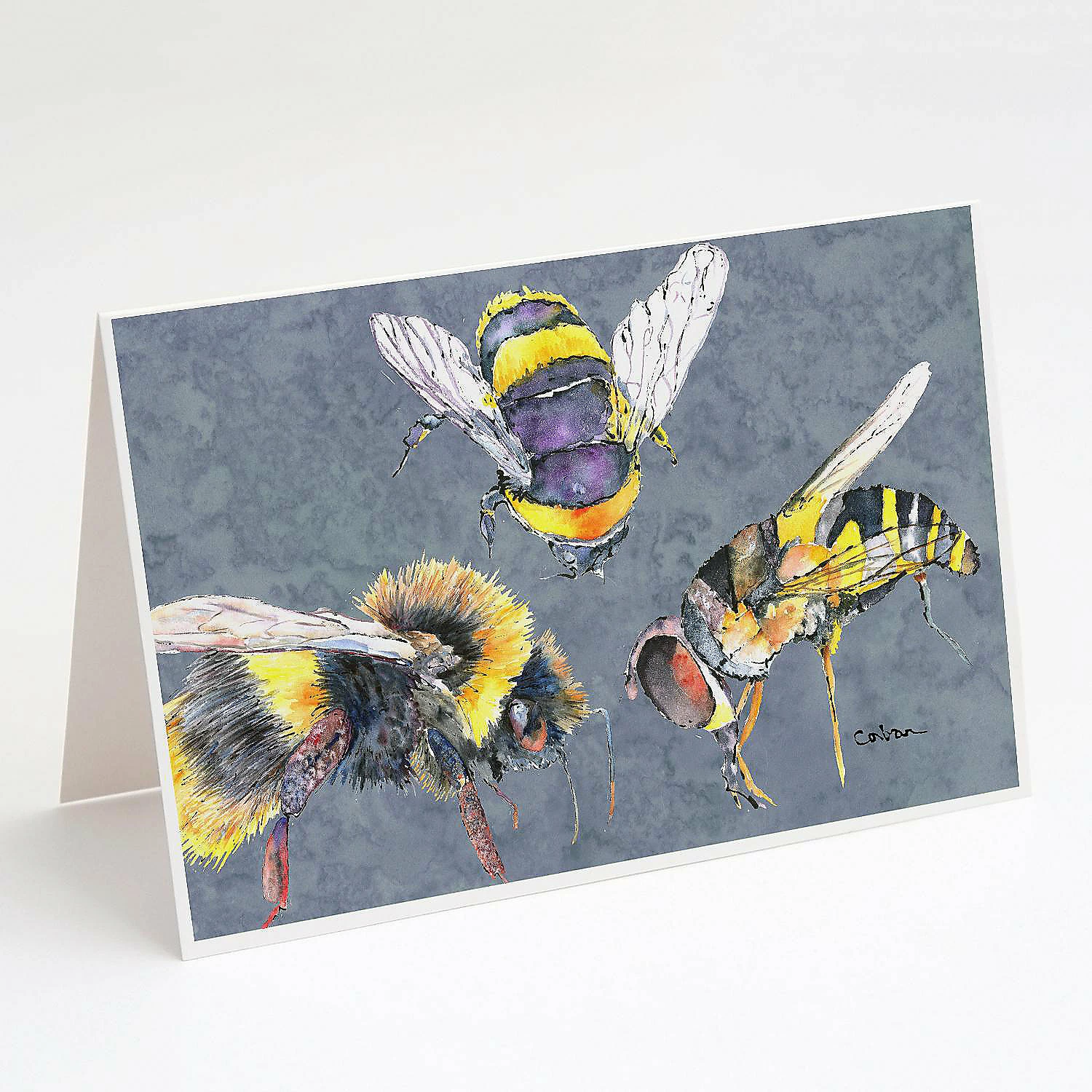 Bee Bees Times Three Greeting Cards and Envelopes Pack of 8. Caroline’s Treasures Printed Greeting card Pack. This is a pack of eight folded 5×7 cards and eight matching white envelopes. These cards are blank inside for you to add your special note or special holiday greeting. The full color artwork cards are printed in our facility in full color on our 80 lb cover stock or 216 GSM. The super smooth finish of the white cards really enhance the artwork on the card. Each card comes with a matching white envelope. The artwork on the card was created by one of our in house creative artist or one of our licensed artists. This is from Caroline’s Treasures Insects category of products.