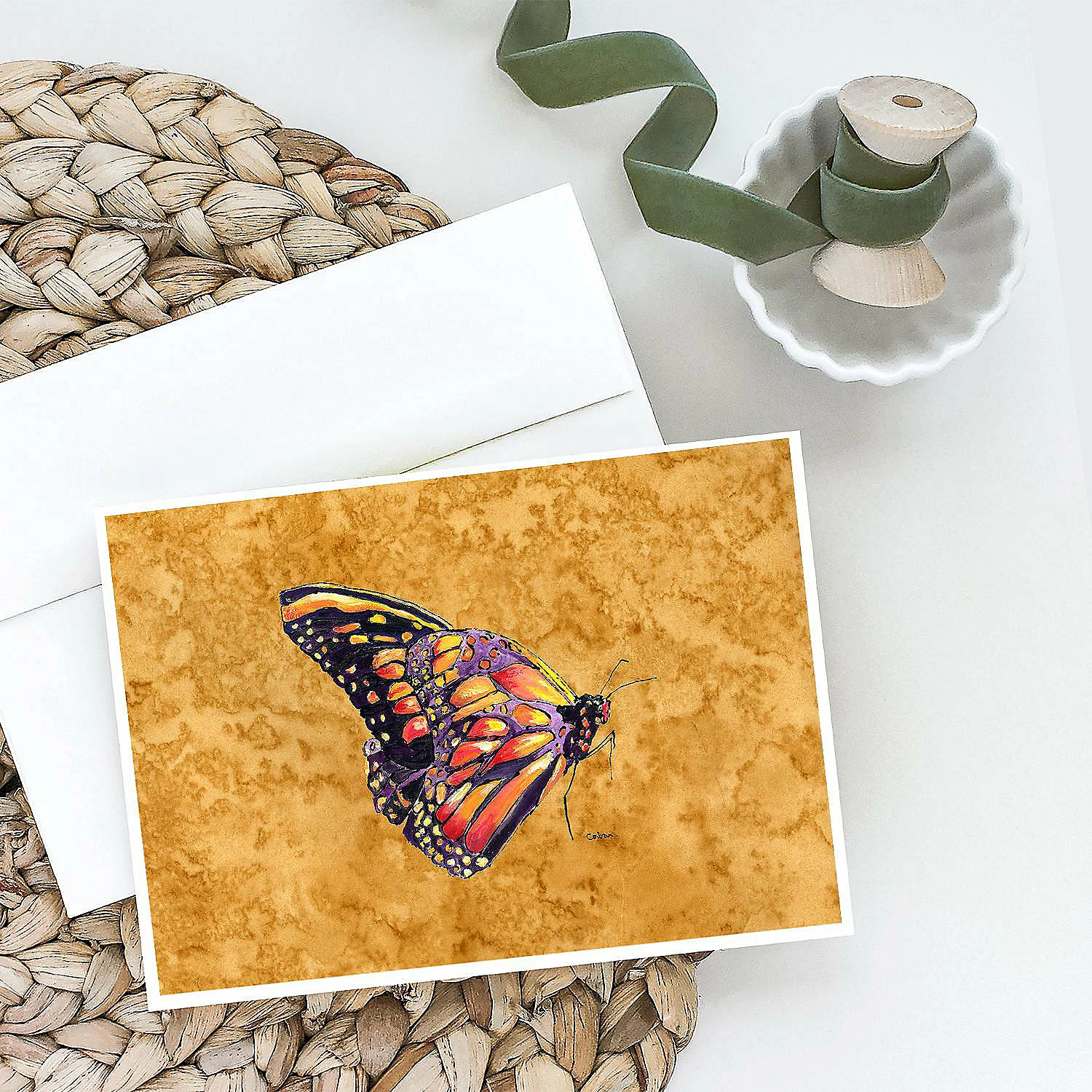 Butterfly on Gold Greeting Cards and Envelopes Pack of 8. Caroline’s Treasures Printed Greeting card Pack. This is a pack of eight folded 5×7 cards and eight matching white envelopes. These cards are blank inside for you to add your special note or special holiday greeting. The full color artwork cards are printed in our facility in full color on our 80 lb cover stock or 216 GSM. The super smooth finish of the white cards really enhance the artwork on the card. Each card comes with a matching white envelope. The artwork on the card was created by one of our in house creative artist or one of our licensed artists. This is from Caroline’s Treasures Insects category of products.