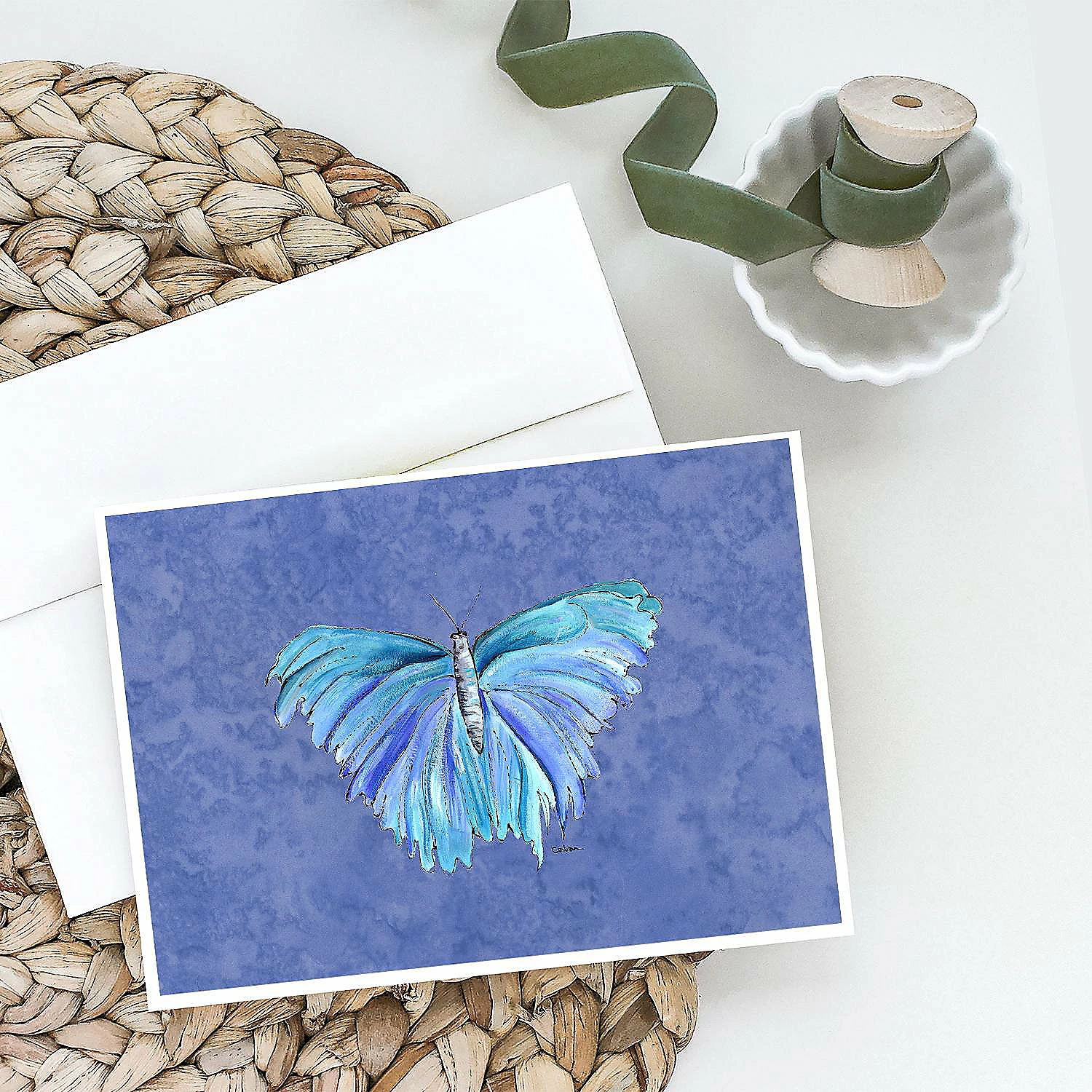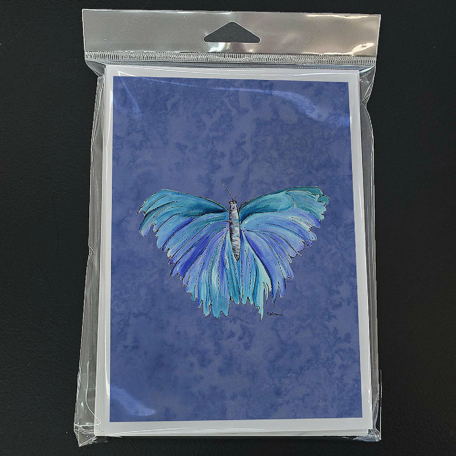 Butterfly on Slate Blue Greeting Cards and Envelopes Pack of 8. Caroline’s Treasures Printed Greeting card Pack. This is a pack of eight folded 5×7 cards and eight matching white envelopes. These cards are blank inside for you to add your special note or special holiday greeting. The full color artwork cards are printed in our facility in full color on our 80 lb cover stock or 216 GSM. The super smooth finish of the white cards really enhance the artwork on the card. Each card comes with a matching white envelope. The artwork on the card was created by one of our in house creative artist or one of our licensed artists. This is from Caroline’s Treasures Insects category of products.