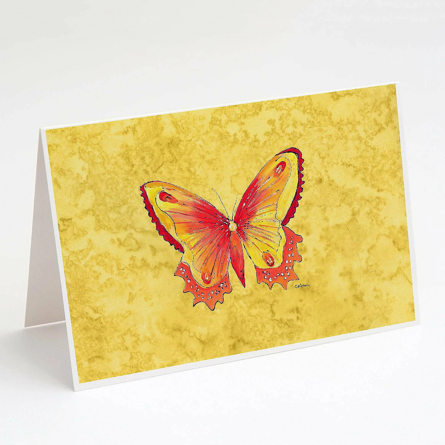 Butterfly on Yellow Greeting Cards and Envelopes Pack of 8. Caroline’s Treasures Printed Greeting card Pack. This is a pack of eight folded 5×7 cards and eight matching white envelopes. These cards are blank inside for you to add your special note or special holiday greeting. The full color artwork cards are printed in our facility in full color on our 80 lb cover stock or 216 GSM. The super smooth finish of the white cards really enhance the artwork on the card. Each card comes with a matching white envelope. The artwork on the card was created by one of our in house creative artist or one of our licensed artists. This is from Caroline’s Treasures Insects category of products.