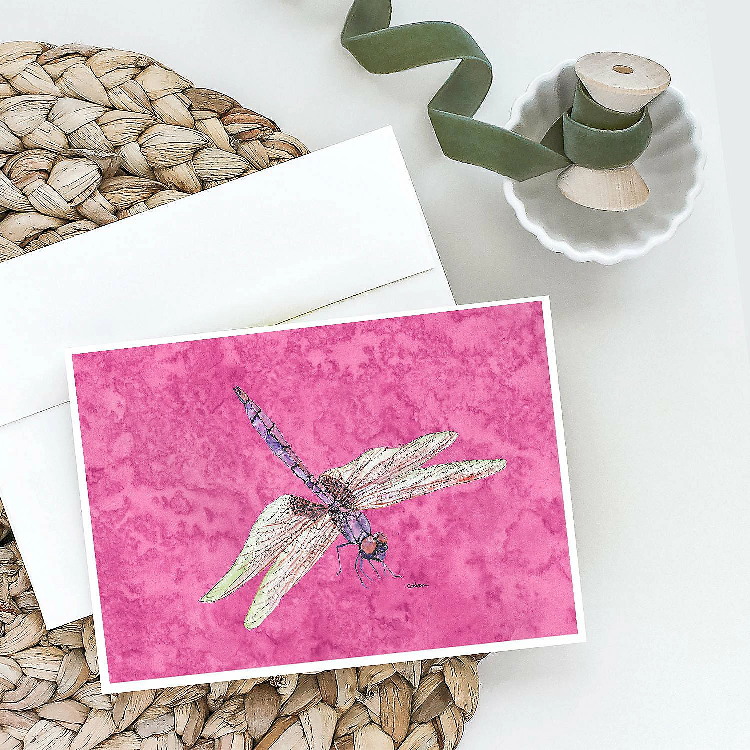 Dragonfly on Pink Greeting Cards and Envelopes Pack of 8. Caroline’s Treasures Printed Greeting card Pack. This is a pack of eight folded 5×7 cards and eight matching white envelopes. These cards are blank inside for you to add your special note or special holiday greeting. The full color artwork cards are printed in our facility in full color on our 80 lb cover stock or 216 GSM. The super smooth finish of the white cards really enhance the artwork on the card. Each card comes with a matching white envelope. The artwork on the card was created by one of our in house creative artist or one of our licensed artists. This is from Caroline’s Treasures Insects category of products.