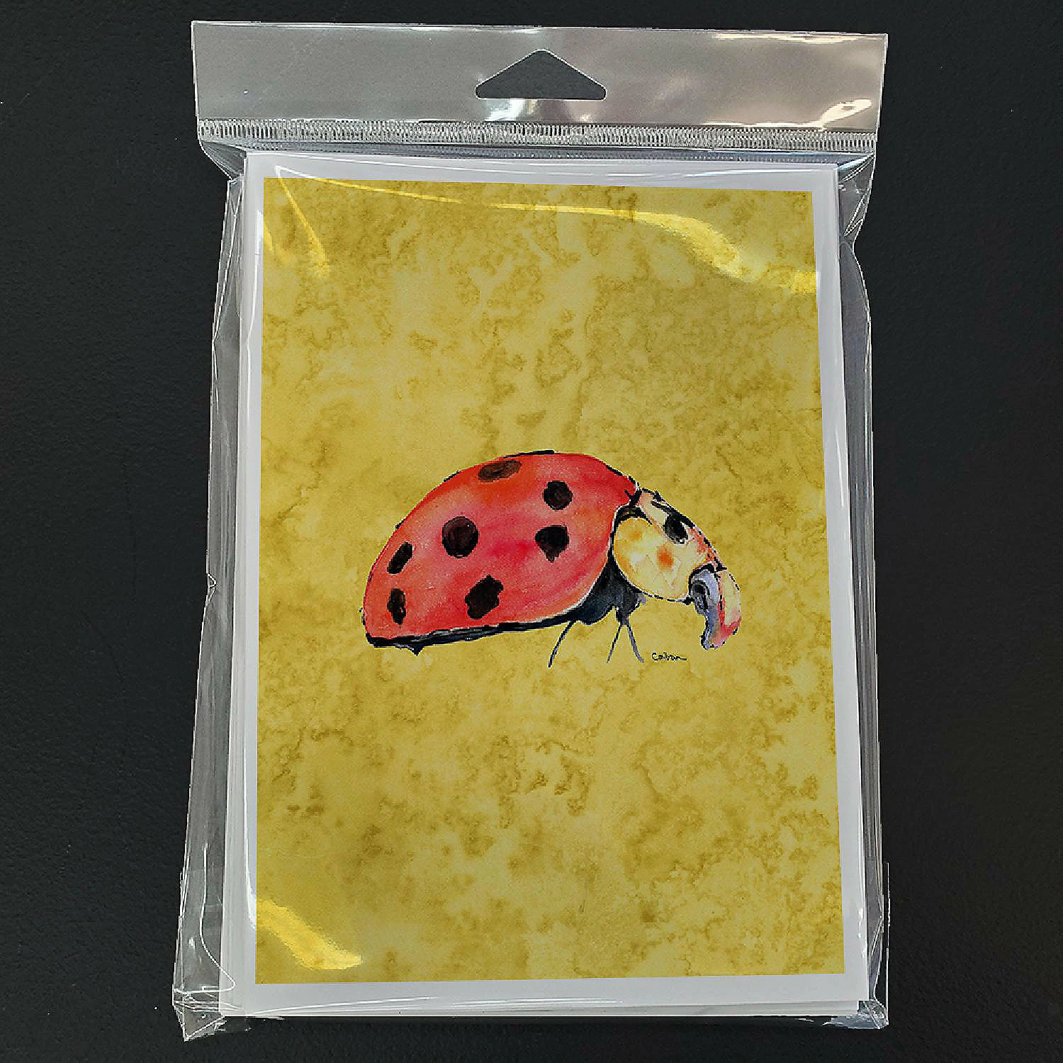 Lady Bug on Yellow Greeting Cards and Envelopes Pack of 8. Caroline’s Treasures Printed Greeting card Pack. This is a pack of eight folded 5×7 cards and eight matching white envelopes. These cards are blank inside for you to add your special note or special holiday greeting. The full color artwork cards are printed in our facility in full color on our 80 lb cover stock or 216 GSM. The super smooth finish of the white cards really enhance the artwork on the card. Each card comes with a matching white envelope. The artwork on the card was created by one of our in house creative artist or one of our licensed artists. This is from Caroline’s Treasures Insects category of products.
