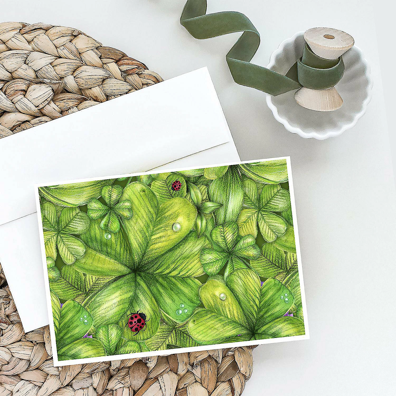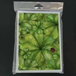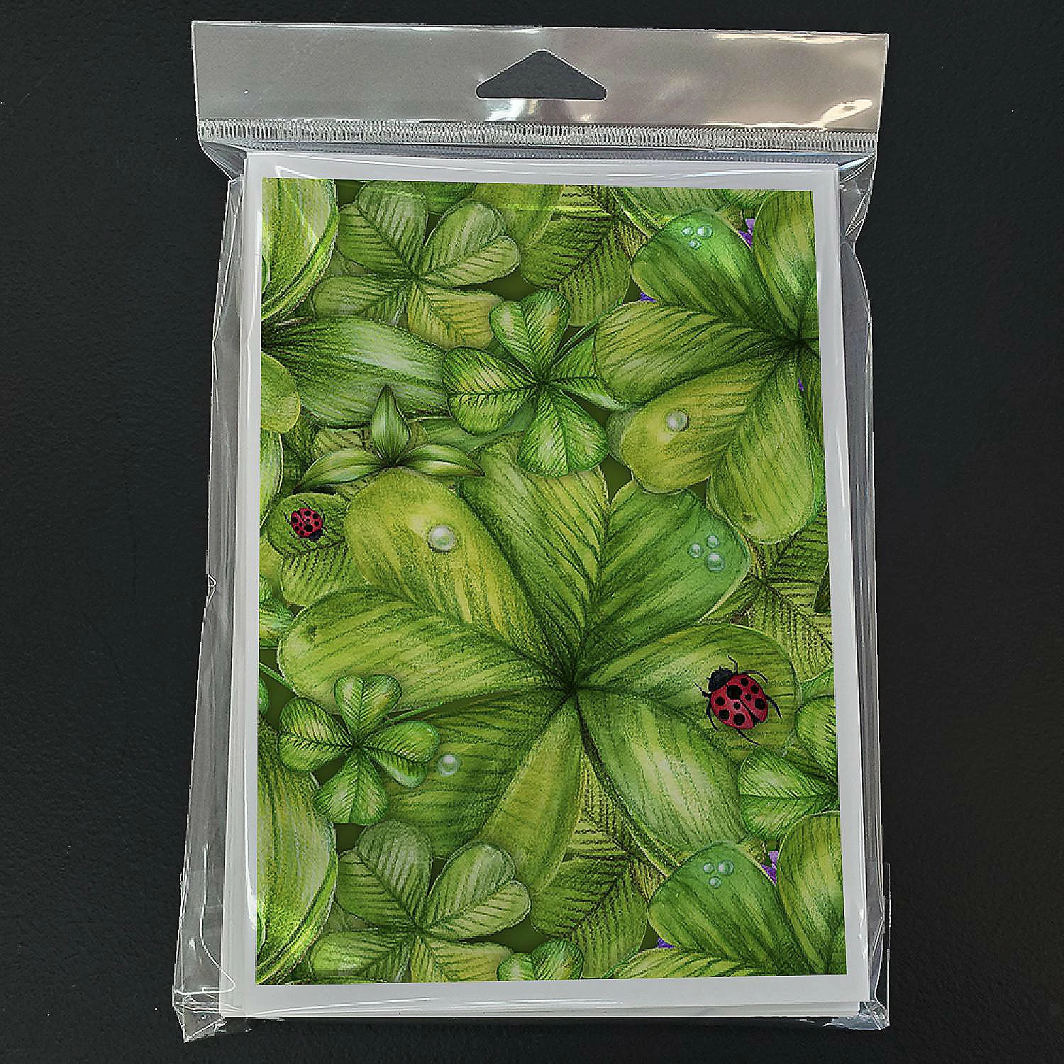 Shamrocks and Lady bugs Greeting Cards and Envelopes Pack of 8. Celebrate St Patrick’s Day with this St Patrick’s Day . Caroline’s Treasures Printed Greeting card Pack. This is a pack of eight folded 5×7 cards and eight matching white envelopes. These cards are blank inside for you to add your special note or special holiday greeting. The full color artwork cards are printed in our facility in full color on our 80 lb cover stock or 216 GSM. The super smooth finish of the white cards really enhance the artwork on the card. Each card comes with a matching white envelope. The artwork on the card was created by one of our in house creative artist or one of our licensed artists. This is from Caroline’s Treasures Insects category of products.