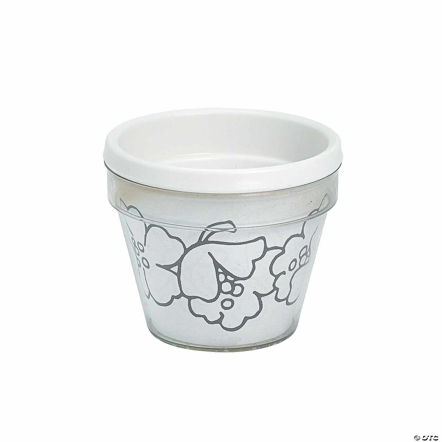 β’ LEARN & DEVELOP LANGUAGE β Coloring is more than just a fun activity for kids! Letting your child color, scribble and doodle is also the perfect time to practice naming primary colors and to teach them about other hues of colors. Discuss their new flowerpots and ask them why they chose the colors and designs that they did.β’ ENJOY A SELF-SOOTHING ACTIVITY β Sometimes, little kids can have big emotions, and they might not always know how to calm themselves down. Coloring these DIY flowerpots for kids is a great stress-relieving activity for both children and adults. So, take the time to unwind with this color your own project and let the parent/child bonding begin!β’ HAVE A BLAST! β When it comes to creating art, the possibilities for fun are endless! Kids will have a blast coloring in their creations, and itβs a simple activity that can be finished in stages. Color in all the designs or leave a few strategically blank for a fun look! Product Description:The perfect Spring art activity! These flowerpots are guaranteed to get creative juices flowing as kids look forward to gardening. Color them with your own markers and put flowers or trinkets inside! They’re great Mother’s Day or Teacher’s Day gifts. Each plastic flowerpot includes 1 paper insert. Remove insert before washing. Markers sold separately. Size: 3 3/4″Quantity: 12Material: PlasticΒ© OTC