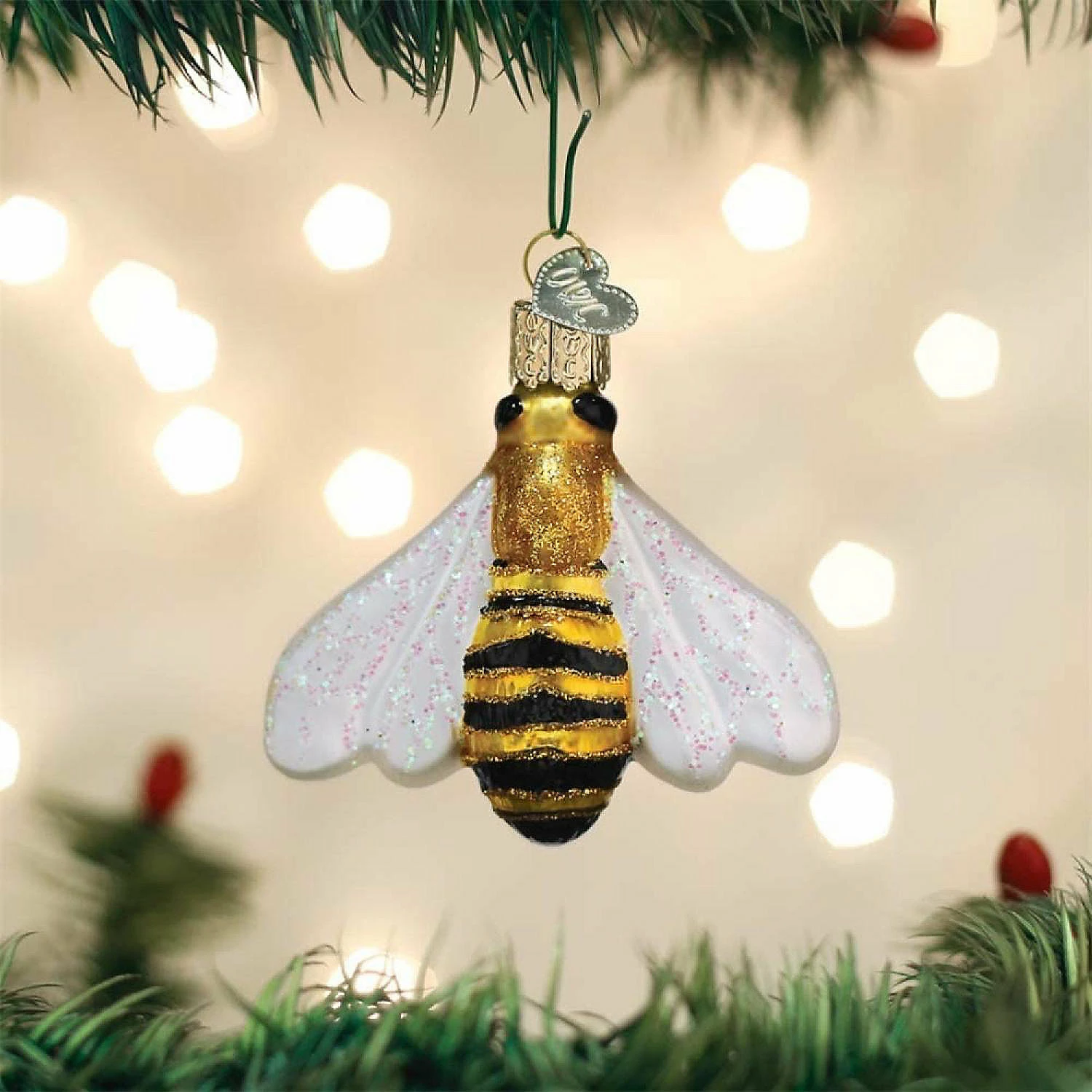 A beautifully detailed ornament for your Christmas tree this upcoming season!Key Product FeaturesPrimary Materials: Blown glass, hand painted with glitter detailsCrafting Technique: Mouth blown molten glass into finely carved moldsDetailing: Hand painted and glittered, finished on all sidesHeart bauble depicts the OWC Trademark logoComes in an Old World Christmas box, that is perfect for storage or gift givingDimensions: 2.75 X 2.5 X 0.75 (HxLxW)These Christmas tree ornaments are hand-crafted and mouth-blown to provide you with a beautifully crafted and high-quality ornament. Each tree topper is made of blown-glass, which is then painted and glittered with great attention to detail, and packed in a printed Old World Christmas gift box.Buzz! Bees hold the world together. Their cross-pollination keeps crops and wild plants thriving. These hard-workers are the only insect to produce food eaten by man, honey. It’s not all sweetness; when provoked, they can deliver a sharp sting.