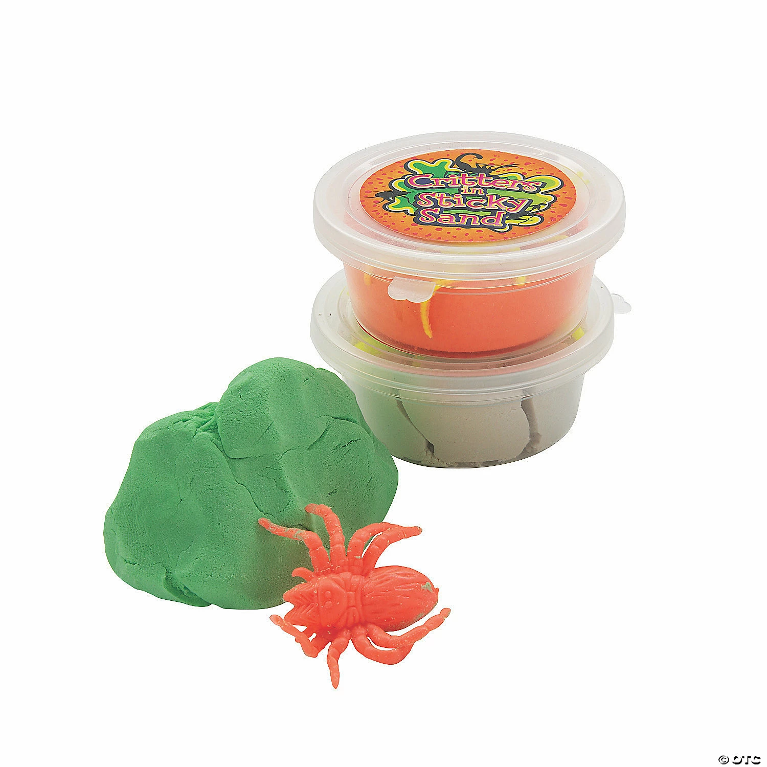 Buried in each container of sticky sand lies a critter toy waiting to be discovered. Kids will love playing with this tactile sticky sand and will be delighted to discover the plastic critter toys! Find a scorpion, centipede, lizard and more with these fun toys that are great as birthday party favors or as classroom rewards. Plastic. Container, 2 1/2″